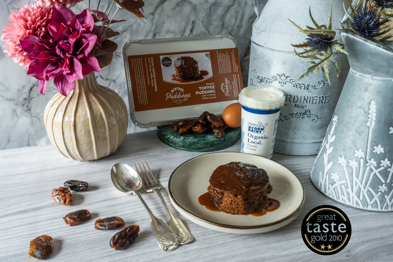 A light date sponge with a creamy, buttery toffee sauce. Supreme Champion at ‘The Great Taste Awards’.